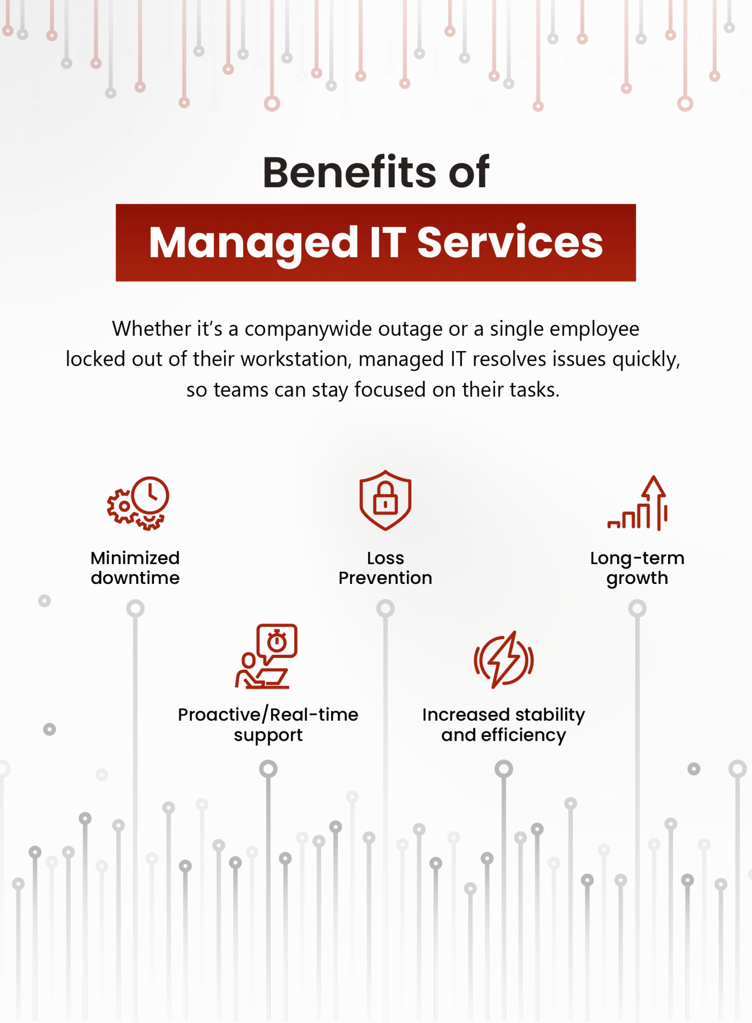 While the monthly cost may cause thrifty business owners to hesitate, it helps to think of managed IT as an investment in stability, efficiency and long-term growth. Without it, frequent system failures and unresolved tech issues can lead to missed opportunities, lost revenue and wasted payroll hours.