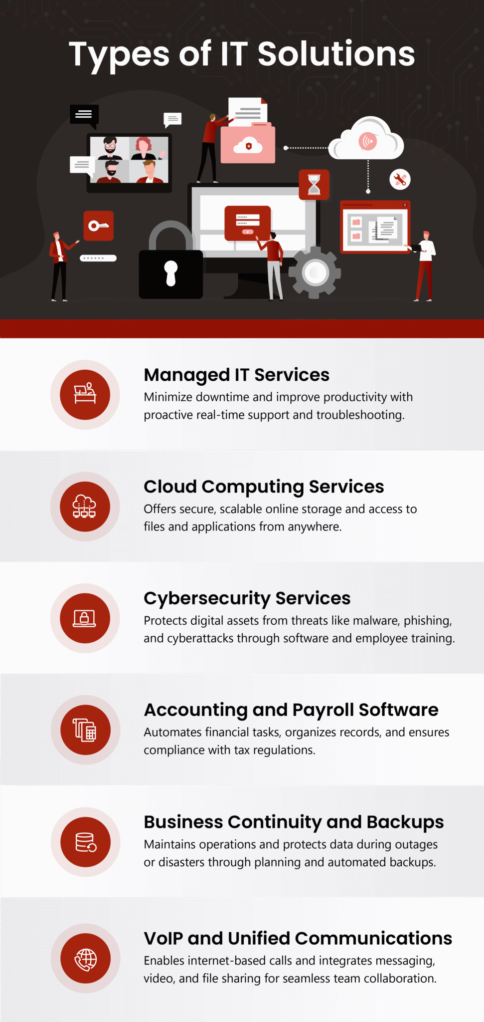 Every dollar counts for budget-conscious businesses, and today’s strategic IT investment is tomorrow’s success story. Core services like managed IT support and cybersecurity are essential for secure, efficient operations. Others, such as VoIP or accounting software, will net a return by streamlining workflows and improving decision-making.